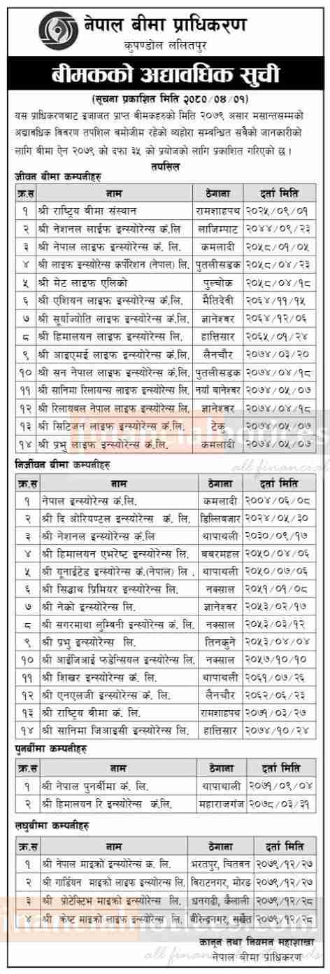 बीमकको अद्यावधिक सुची सम्बन्धमा नेपाल बीमा प्राधिकरणको सूचना