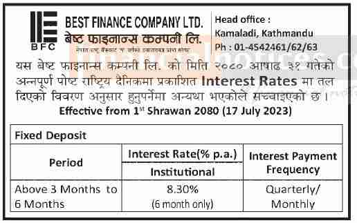 ब्याजदर सच्याइएको सम्बन्धमा बेष्ट फाइनान्सको सूचना