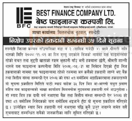 Published by Best Finance Rajdhani Newspaper on 2075-8-02