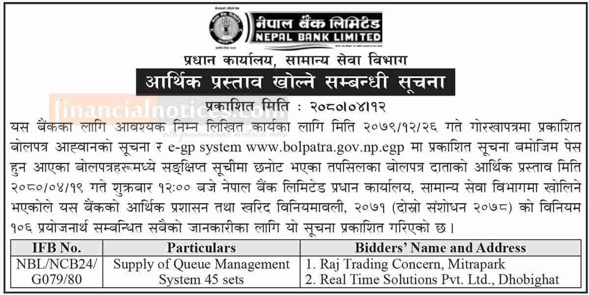 आर्थिक प्रस्ताव खोल्ने सम्बन्धी सूचना