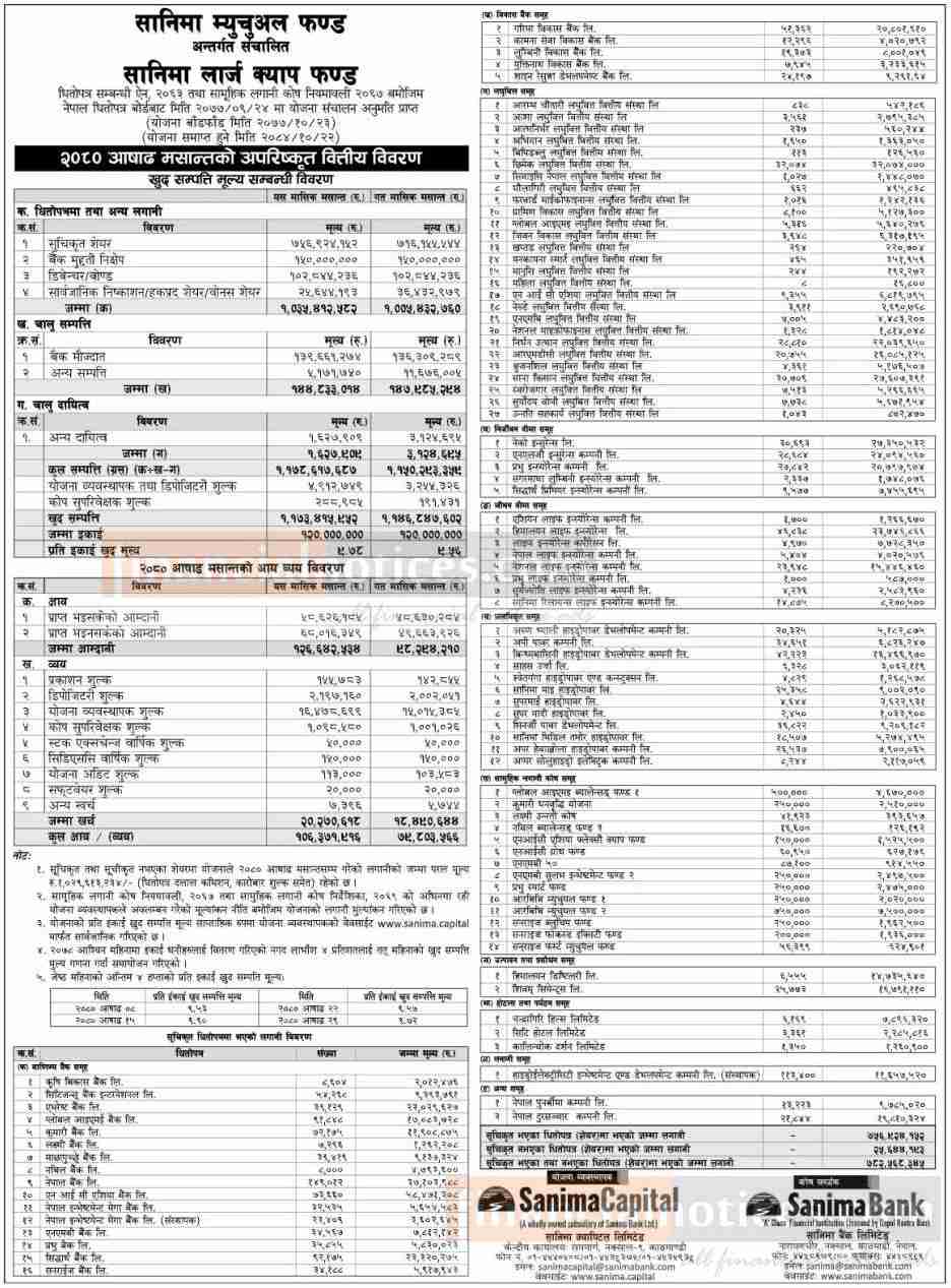 Sanima Capital has published “Sanima Large Cap Fund” Net Asset Value till Ashad, 2080