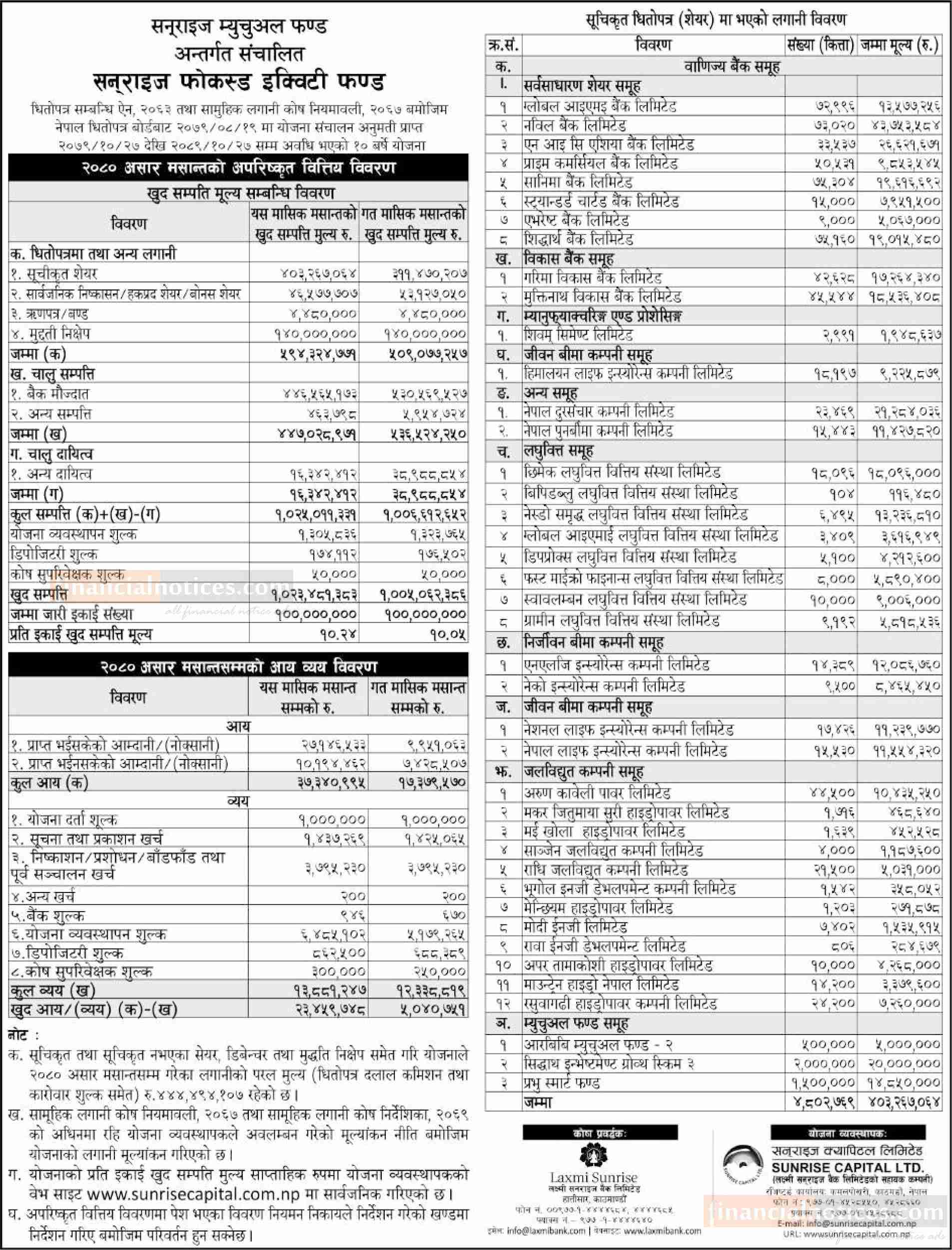 Sunrise Capital Releases Net Asset Value of Sunrise Focused Equity Fund up to Ashad, 2080.