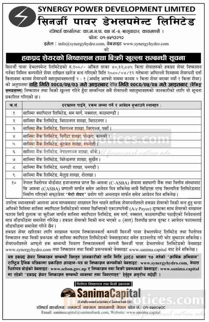 हकप्रद शेयरको निष्काशन तथा बिक्री खुल्ला सम्बन्धी सूचना
