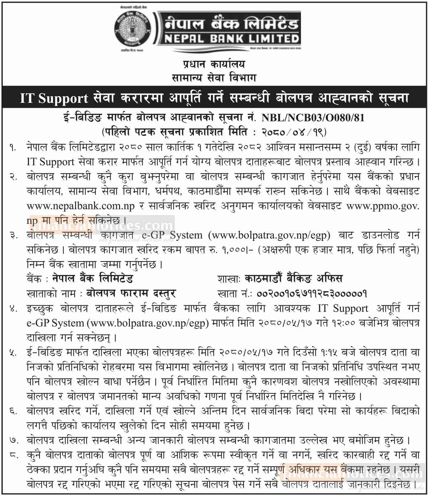 IT Support सेवा करारमा आपुर्ति गर्ने सम्बन्धी बोलपत्र आव्हानको सूचना