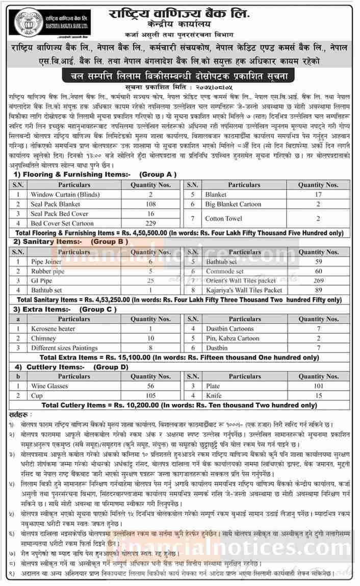 Kumari Bank Auction Notice for Non-Banking Assets at Mahendranagar, Kanchanpur -