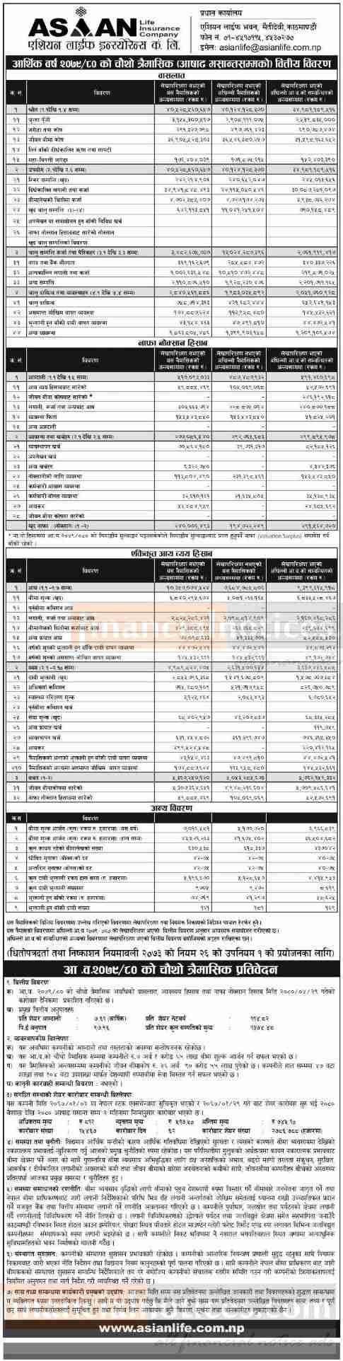 एसियन लाइफ इन्सुरेन्सको खुद नाफा २४ करोड रुपैयाँमा - Q4 Report -