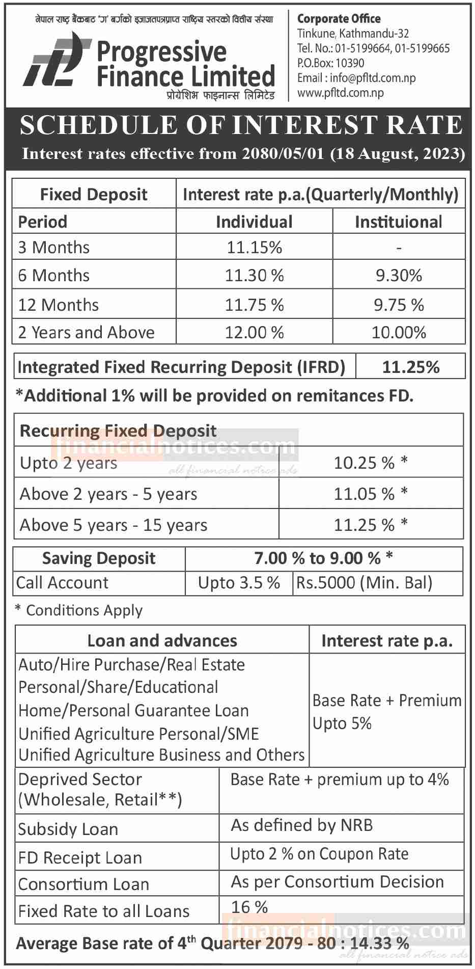 प्रोगेशिभ फाइनान्सको नयाँ ब्याजदर परिवर्तन सम्बन्धी सूचना