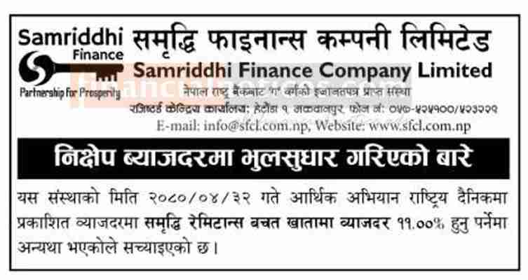 निक्षेप ब्याजदरमा भुलसुधार सम्बन्धी सूचना