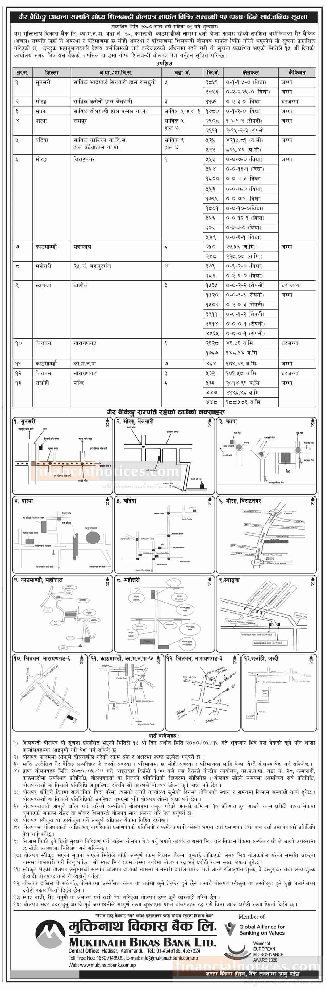 विभिन्न ठाउँको घर जग्गा बोलपत्र मार्फत बिक्री गर्दै मुक्तिनाथ विकास बैंक