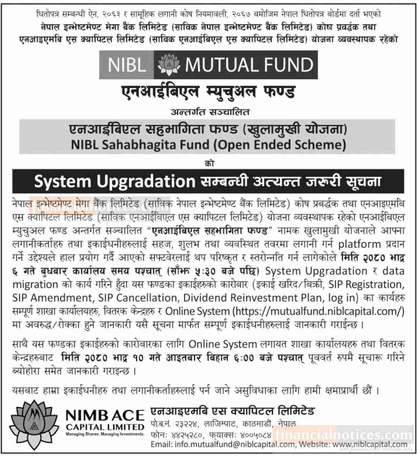 System Upgradation सम्बन्धी अत्यन्त जरुरी सूचना