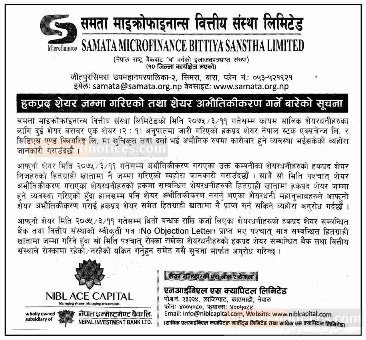 हकप्रद शेयर जम्मा गरिएको सूचना