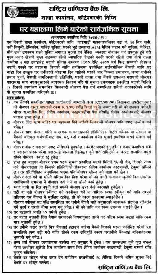 Kumari Bank Auction Notice for Non-Banking Assets at Mahendranagar, Kanchanpur -
