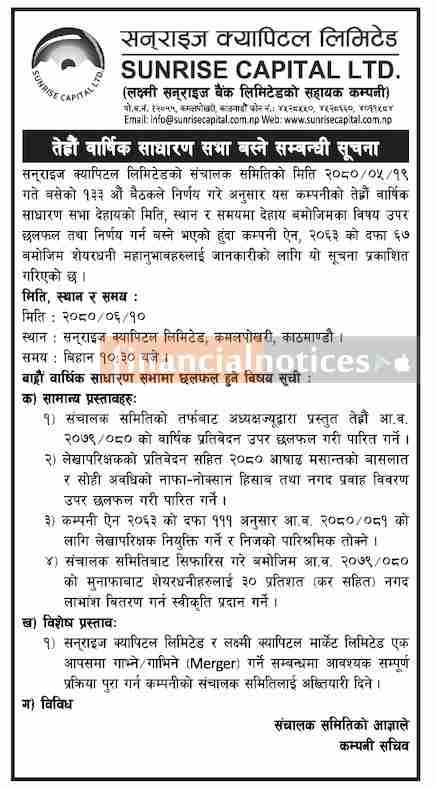 १३ औँ वार्षिक साधारण सभा बस्ने समन्धी सूचना