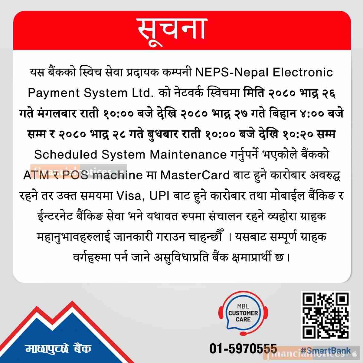 माछापुच्छ्रे बैंकका ग्राहकहरूलाई जरूरी सूचना