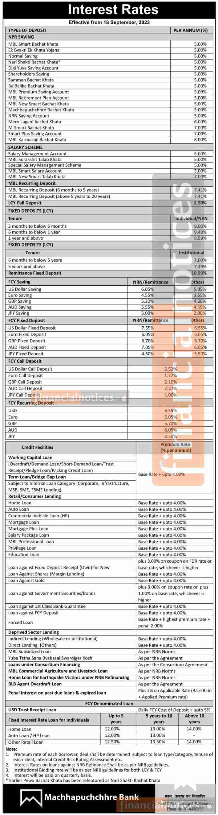 माछापुच्छ्रे बैंकको नयाँ ब्याजदर परिवर्तनको सूचना, कुन खातामा कति पुग्यो ?