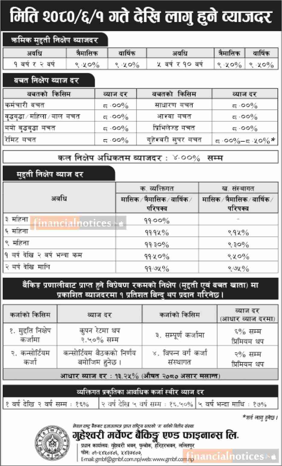 असोज देखि लागु हुने नयाँ ब्याजदर सम्बन्धी सूचना