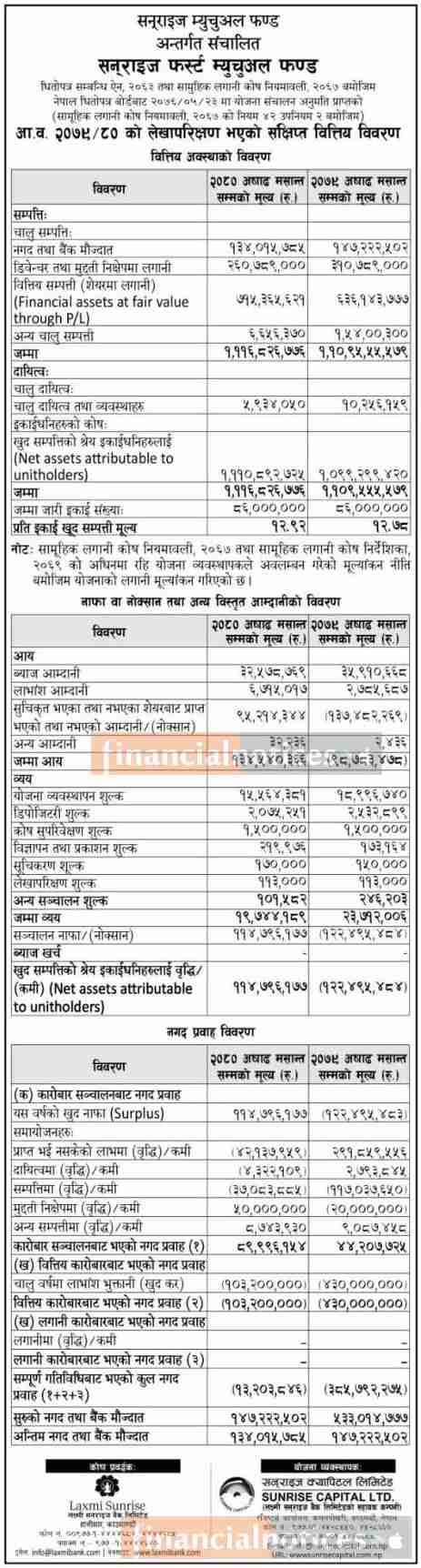 Sunrise Capital has published (Sunrise First Mutual Fund) of the fiscal year 2079/80
