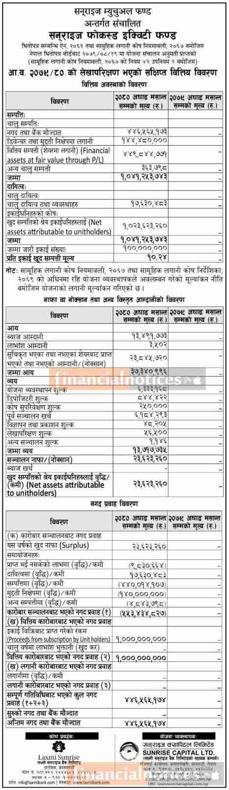 Sunrise Capital has published (Sunrise Focused Equity Fund) of the fiscal year 2079/80
