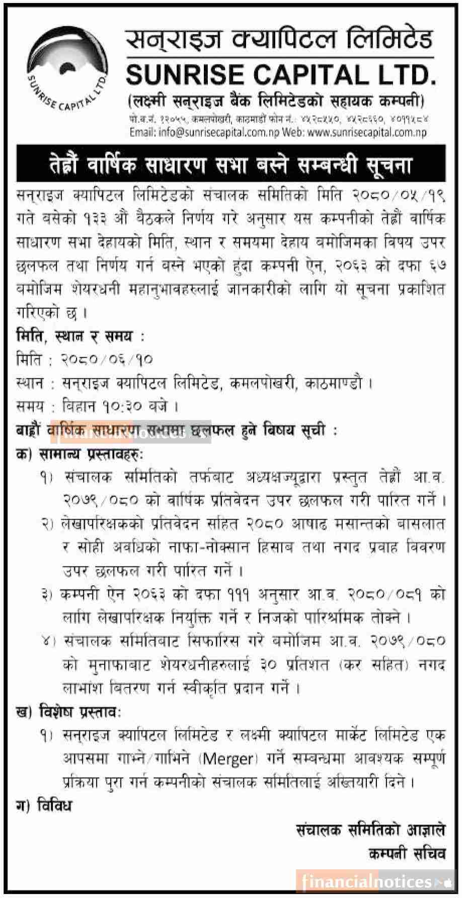 तेह्रौँ वार्षिक साधारण सभा सम्बन्धी सूचना - AGM