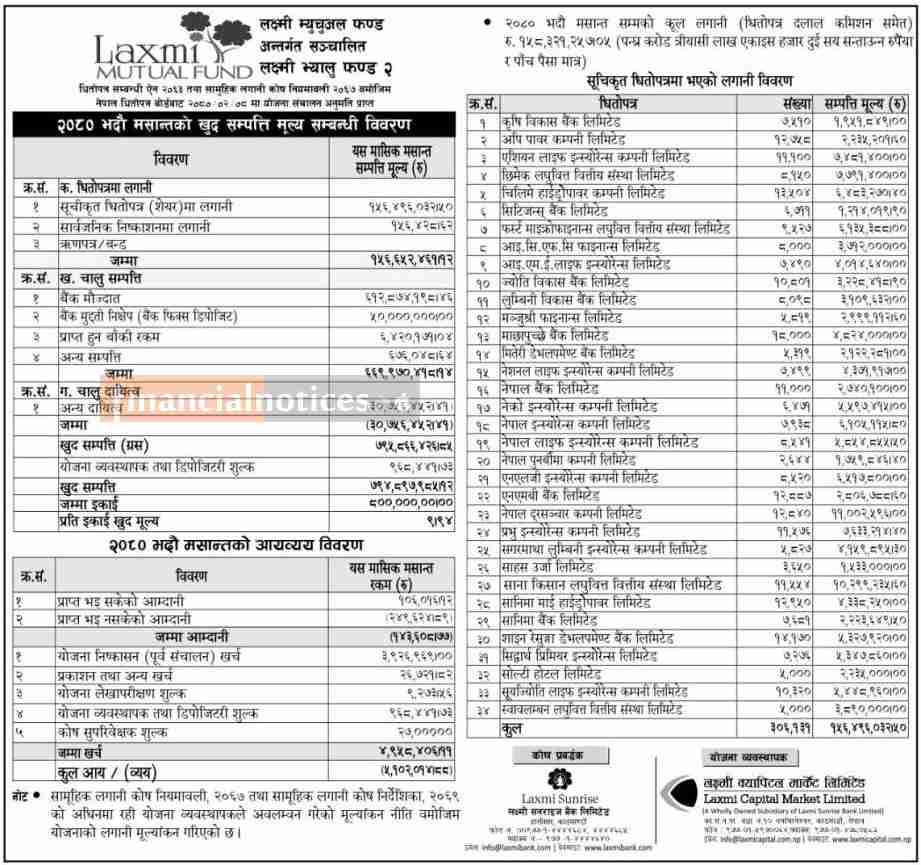 Laxmi Capital Market Limited has published the “Laxmi Value Fund-II” NAV till Bhadra, 2080