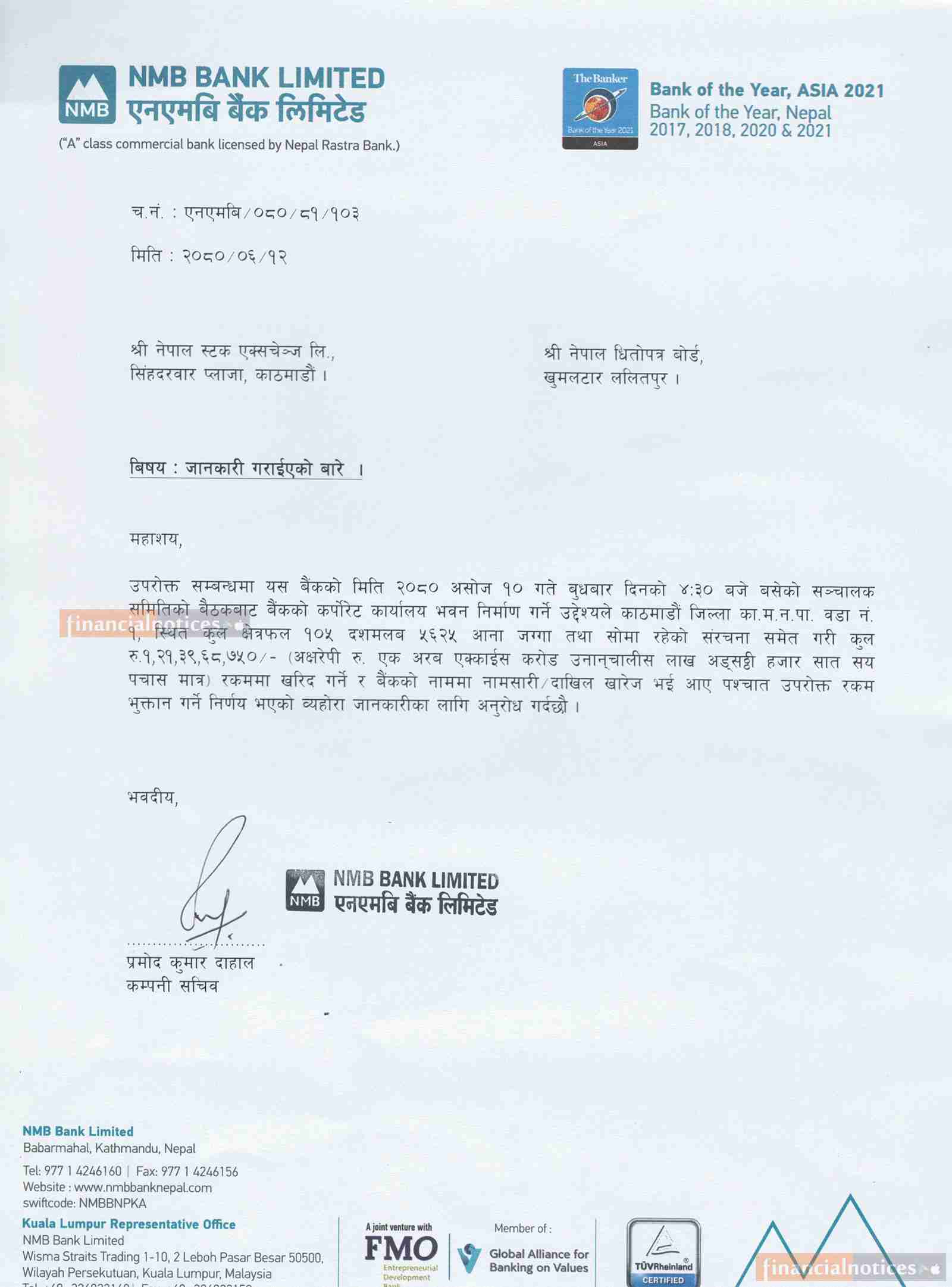 Notice about Land Procurement of NMB Bank Limited