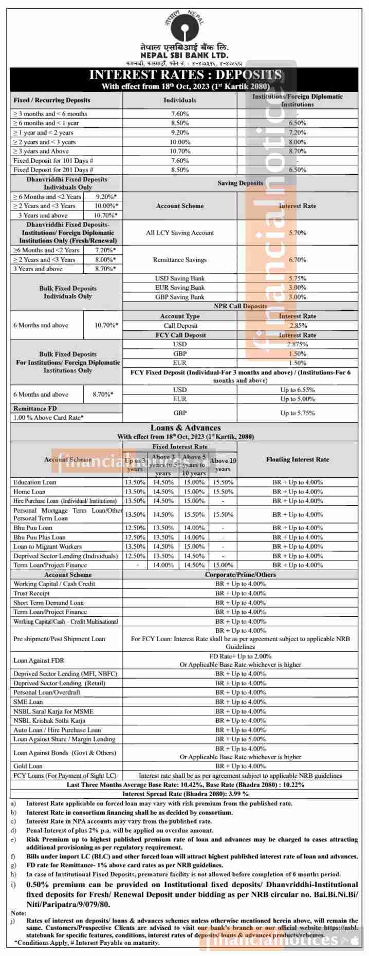 नेपाल एसबिआई बैंकको नयाँ ब्याजदर सम्बन्धी सूचना - New Interest Rates -