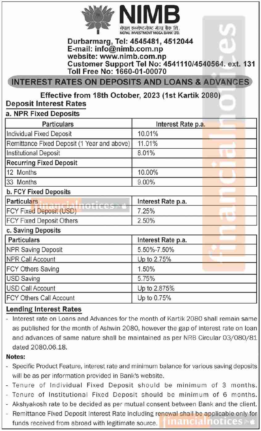 नेपाल इन्भेष्टमेन्ट मेगा बैंकको नयाँ ब्याजदर सार्वजनिकबारे सूचना - Interest Rates -
