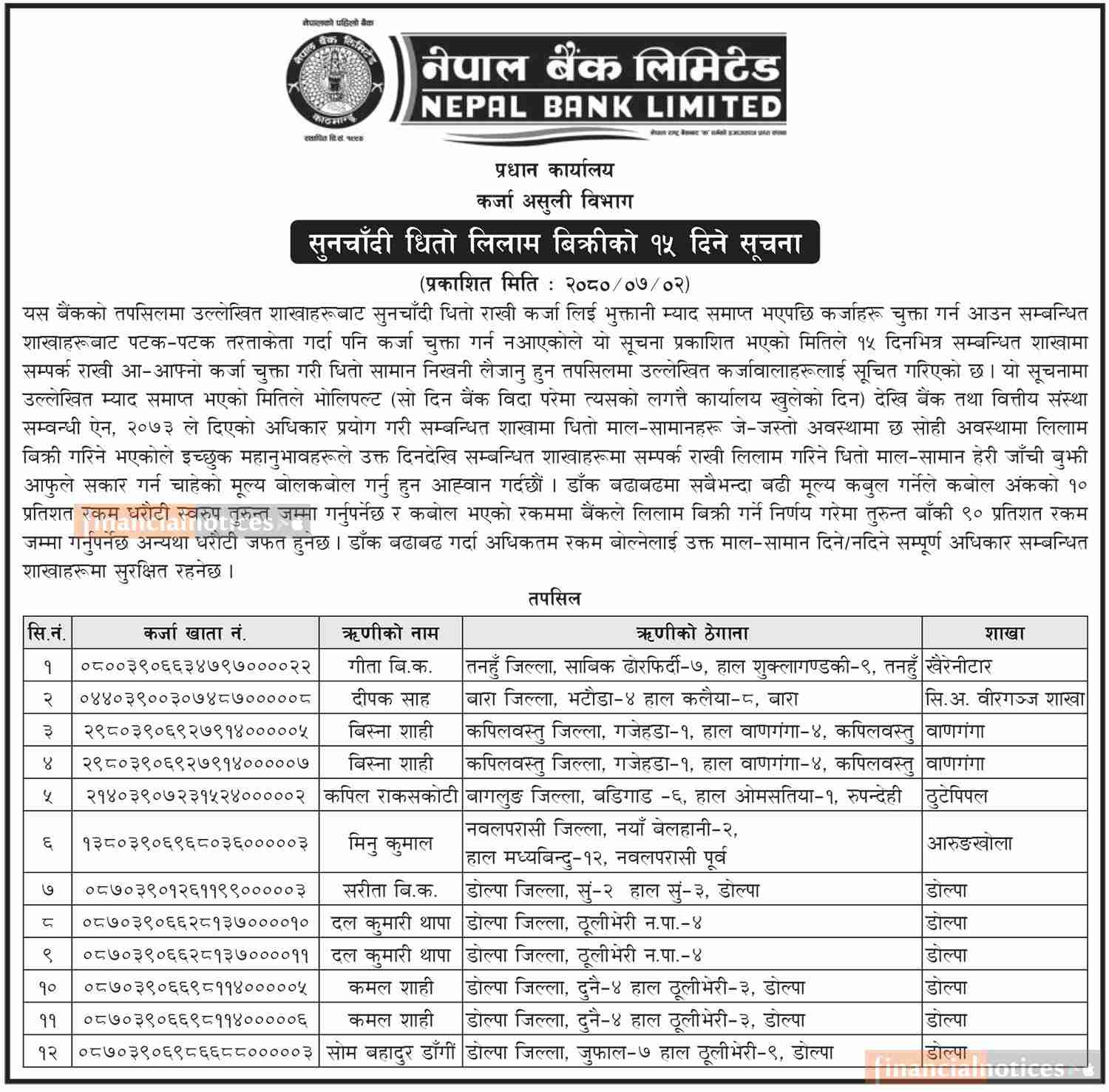 सनचाँदी धितो लिलाम बिक्री सम्बन्धी सूचना