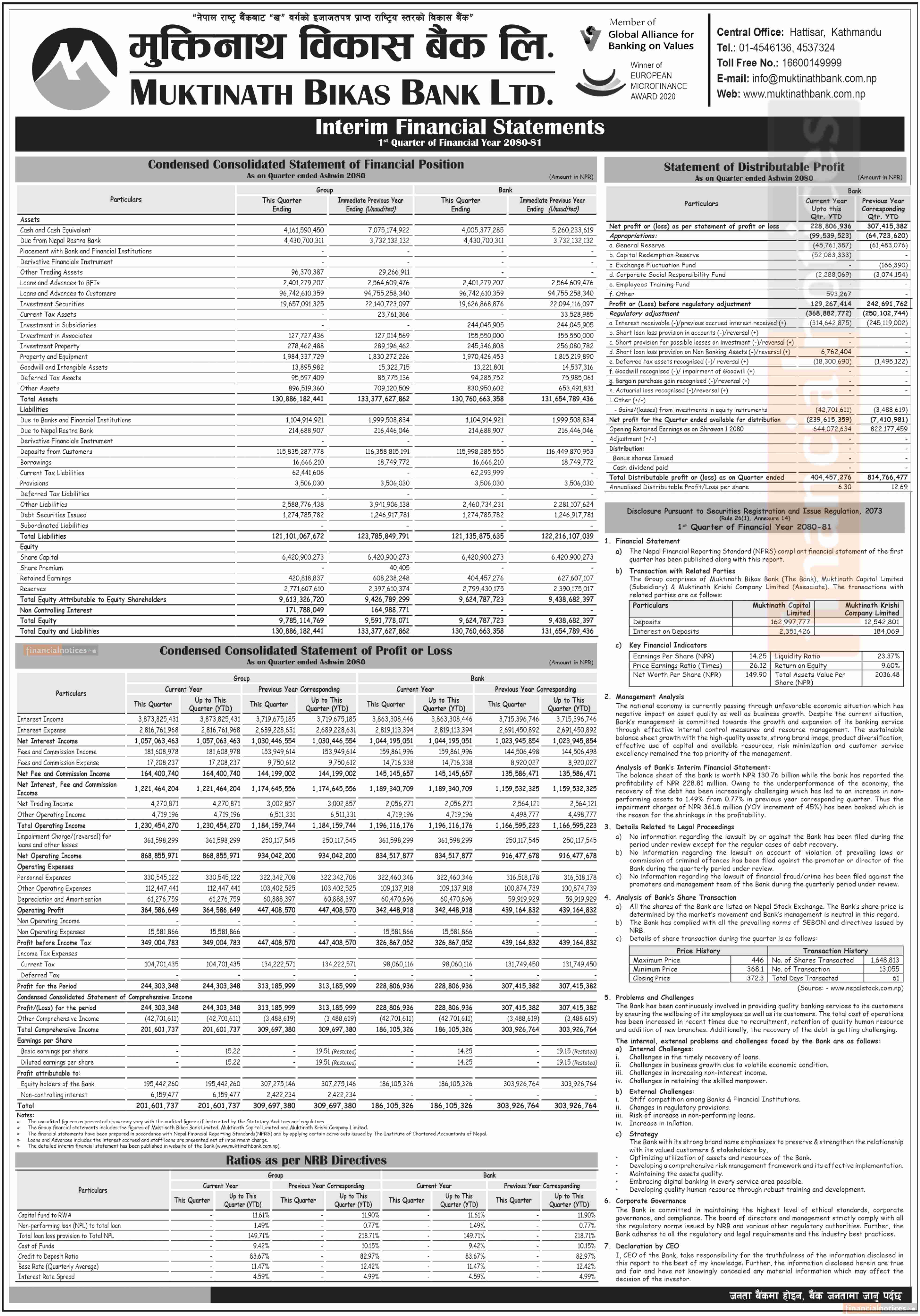 मुक्तिनाथ विकास बैंकको खुद नाफा २२ करोड ८८ लाख ०६ हजार रुपैयाँ