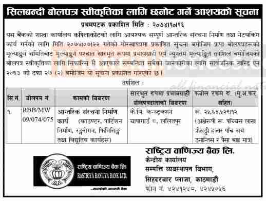 बोलपत्र स्वीकृतिका लागि छनोट गर्ने आशयको सूचना
