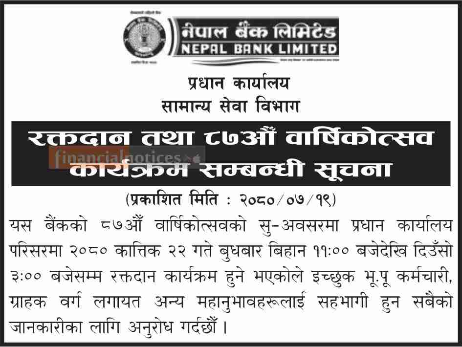 रक्तदान तथा ८९औँ वार्षिकोत्वस कार्यक्रम सम्बन्धी सूचना