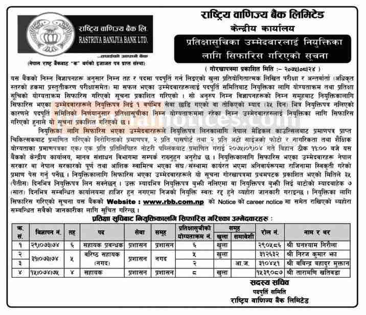 नियुक्तिका लागि सिफारीस गरिएको सूचना