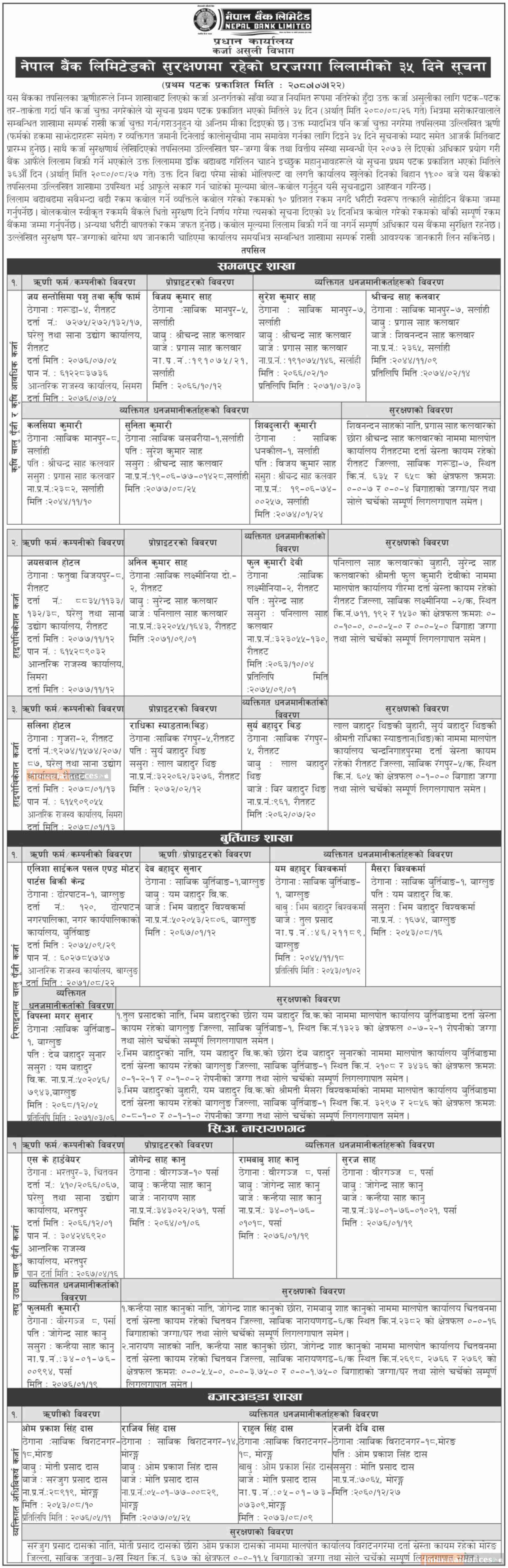 नेपाल बैंकको सुरक्षरणमा रहेको घरजग्गा लिलामीको ३५ दिने सूचना