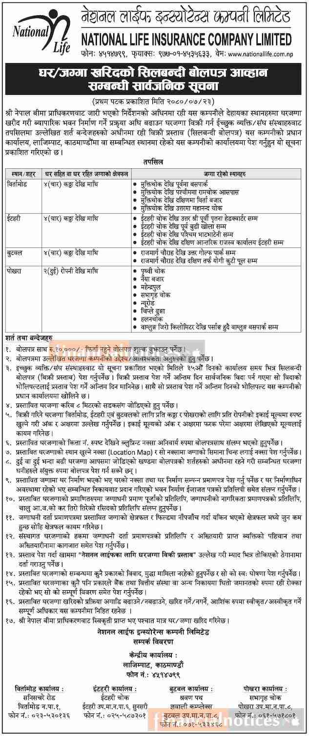 घर जग्गा खरिदको लागि शिलबन्दी बोलपत्र आव्हान सम्बन्धी सूचना