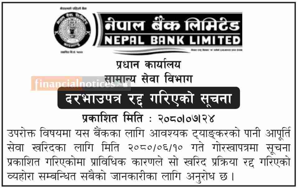 दरभाउपत्र रद्द गरिएको सम्बन्धी सूचना