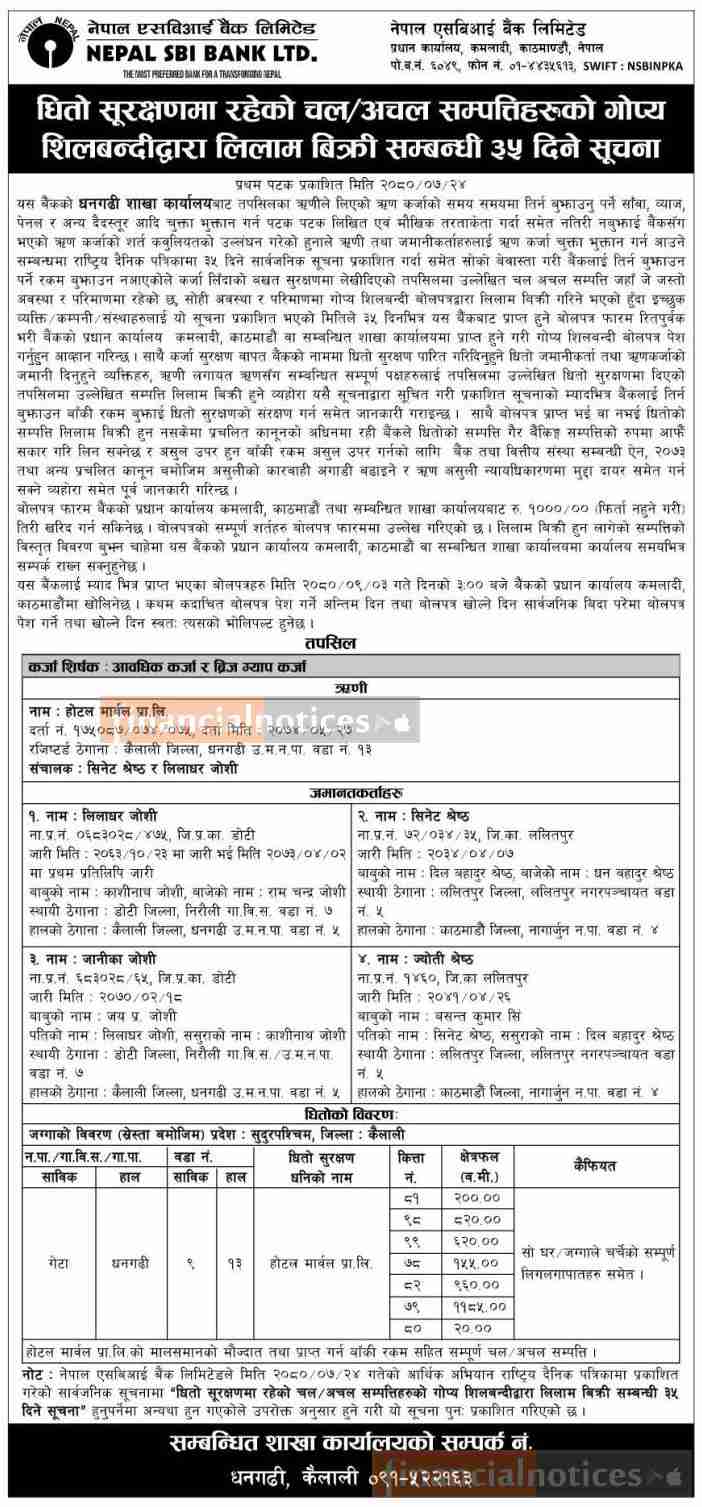 Nepal SBI Bank: Auction Notice for Non-Banking Assets at Geta-2, Kailali