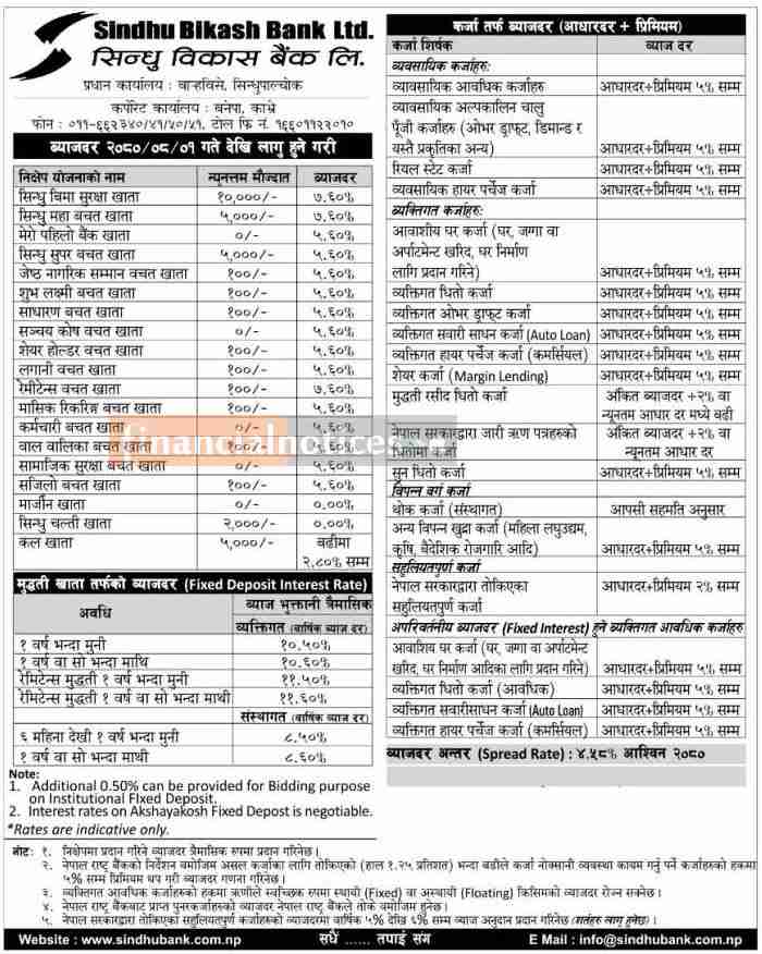 सिन्धु विकास बैंकको नयाँ ब्याजदर सार्वजनिक सम्बन्धी सूचना