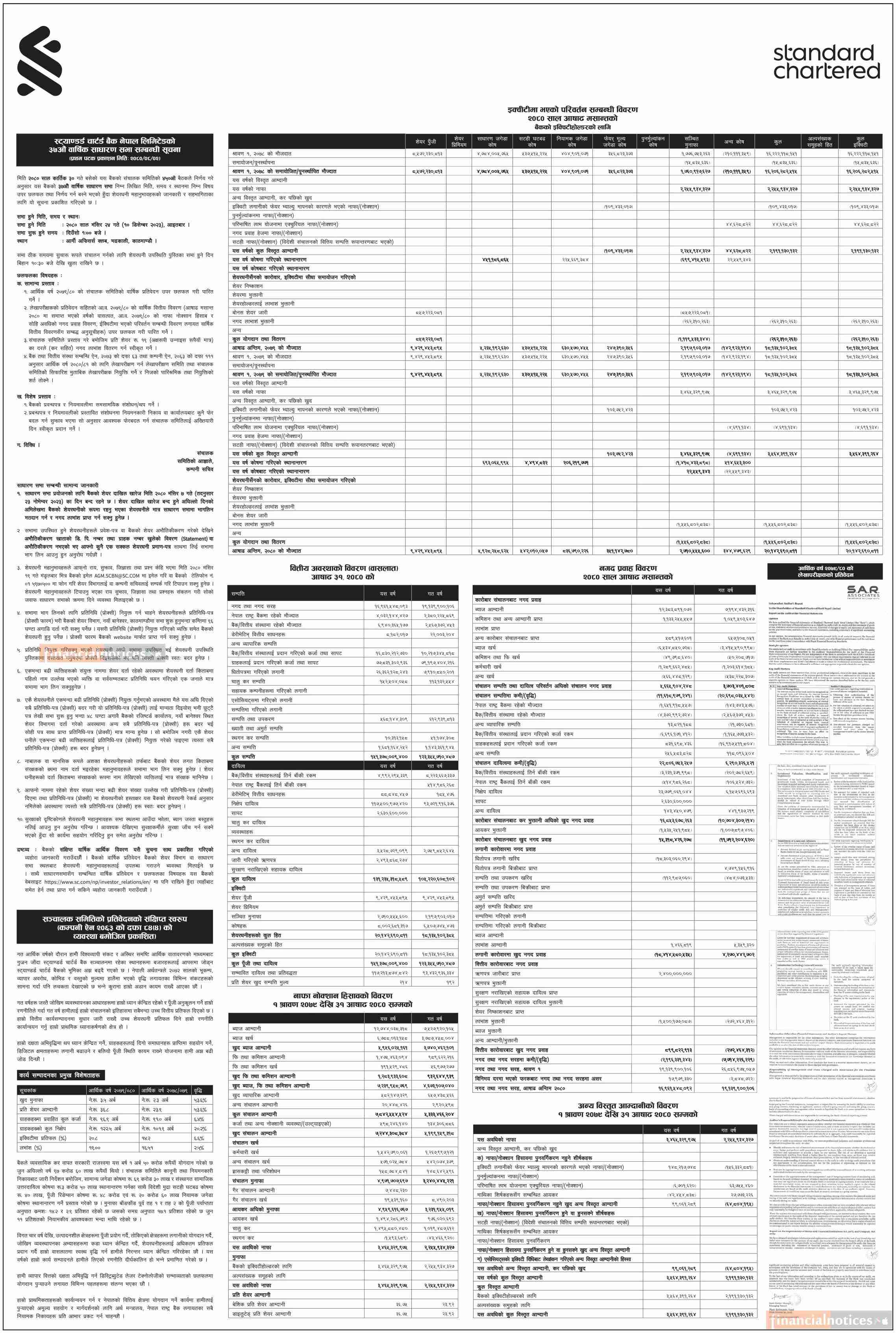स्ट्याण्डर्ड चार्टर्ड बैंकको ३७ औँ वार्षिक साधारण सभा सम्बन्धी सूचना
