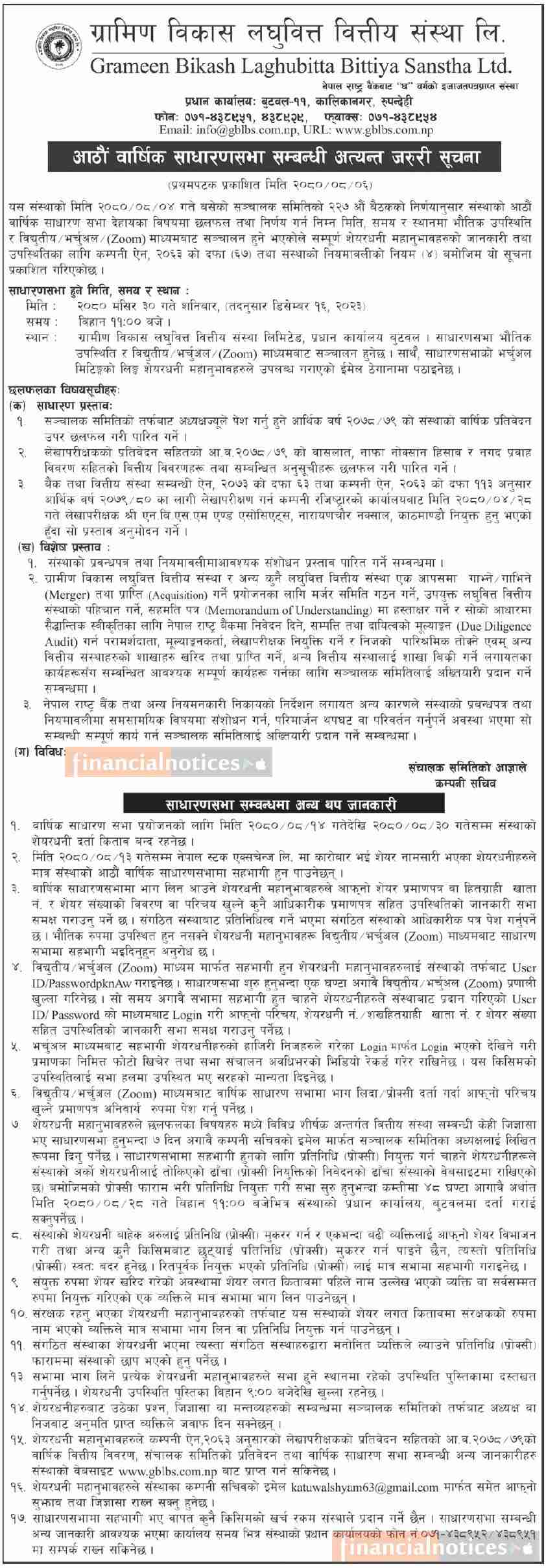 आठौं वार्षिक साधारण सभा सम्बन्धी सूचना