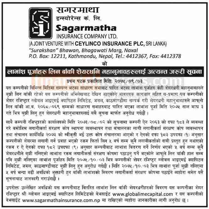 Published by Sagarmatha Lumbini Insurance (SALICO) Annapurna Post on 2075-9-03