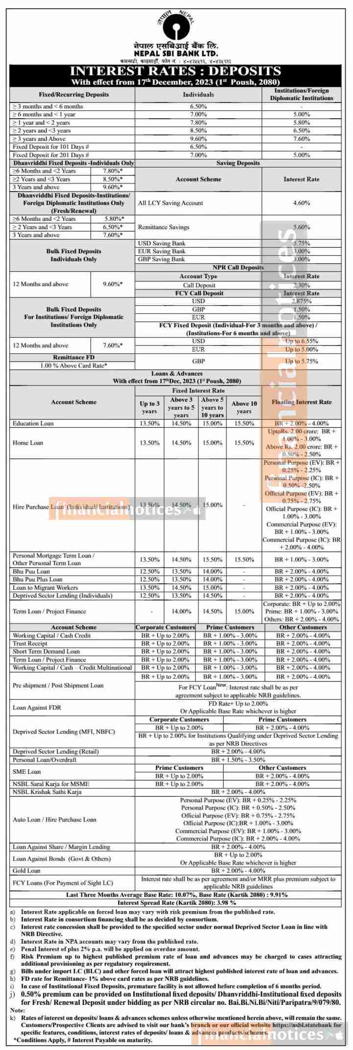 नेपाल एसबिआई बैंकको नयाँ ब्याजदर सम्बन्धी सूचना - New Interest Rates -