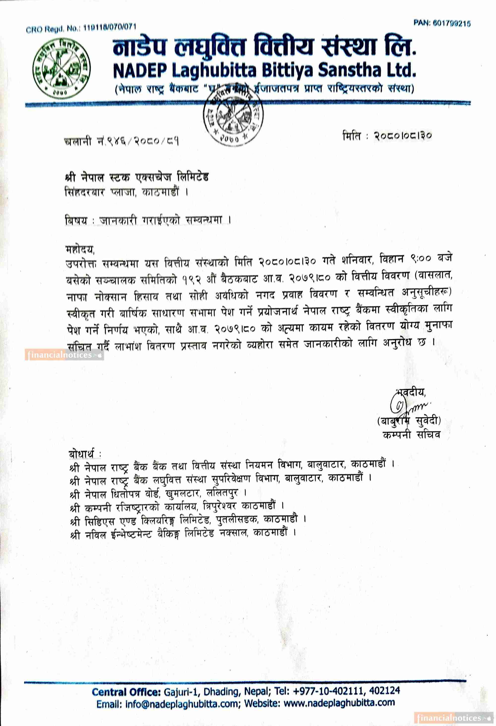 नाडेप लघुवित्तले लाभांश वितरण नगर्ने सम्बन्धी सूचना