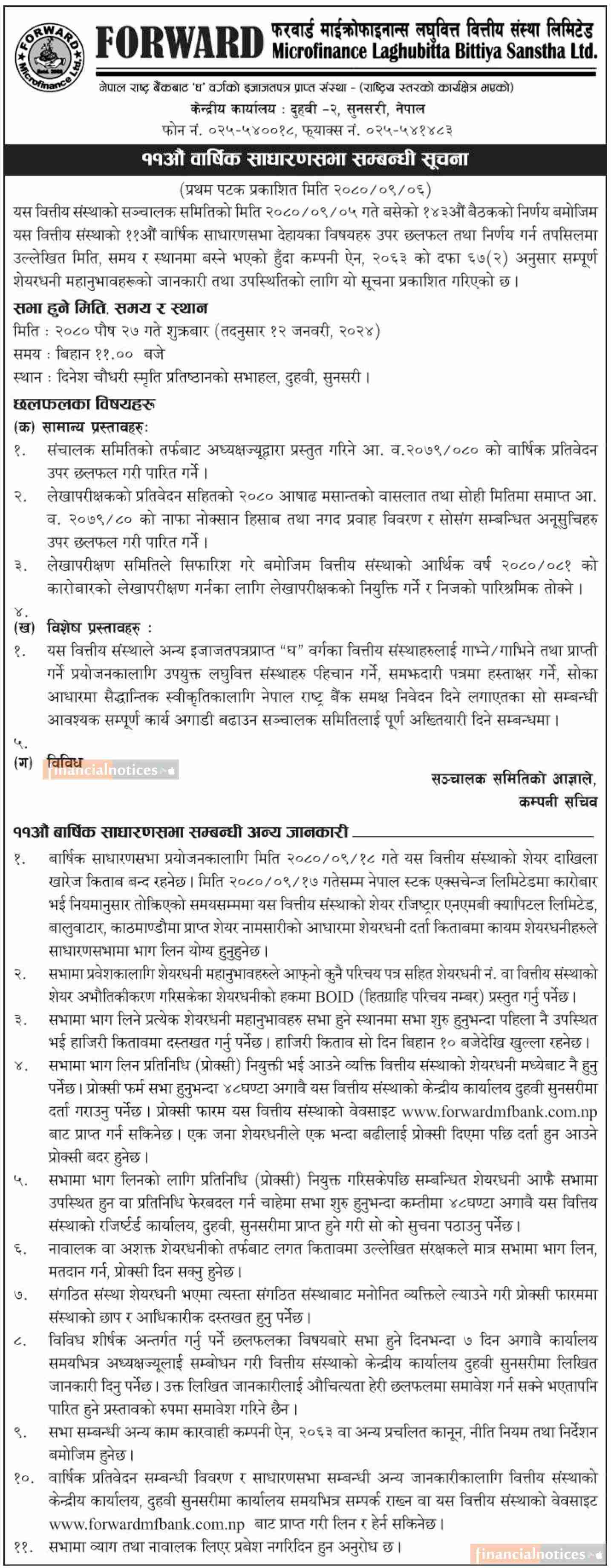 11th Annual General Meeting Notice