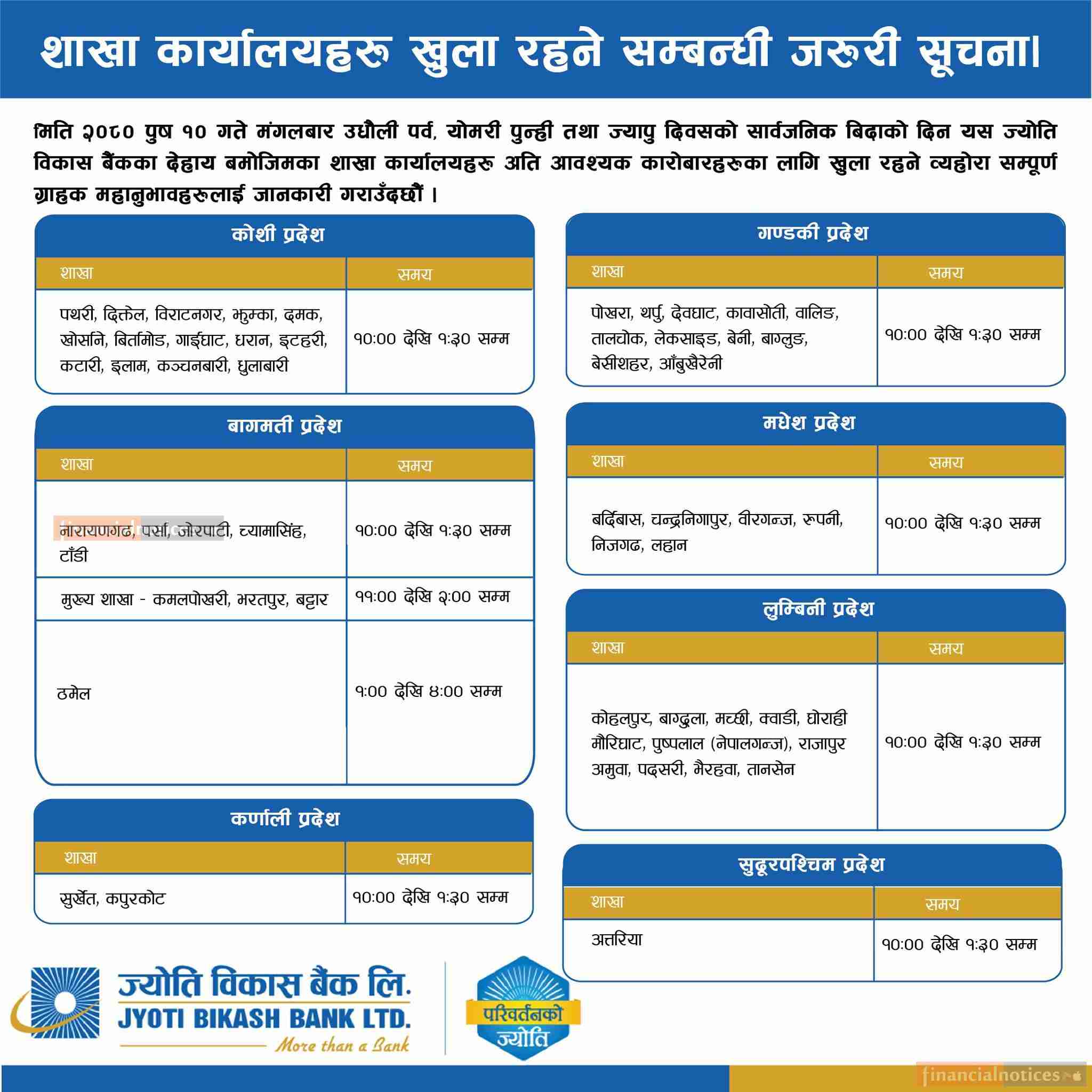 शाखा कार्यालयहरू खुला रहने सम्बन्धी जरुरी सूचना