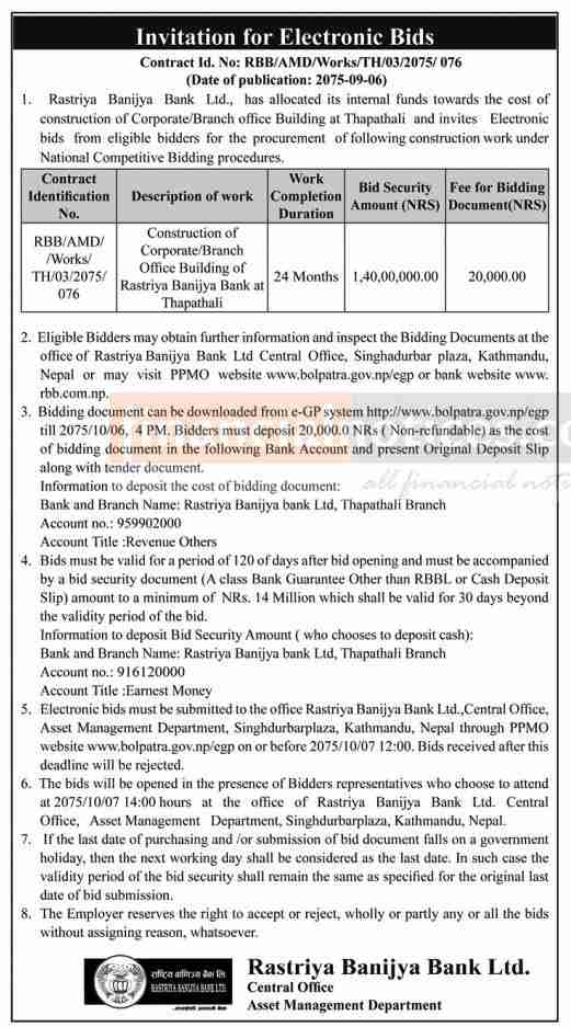 Invitation for electronic Bids - RBB