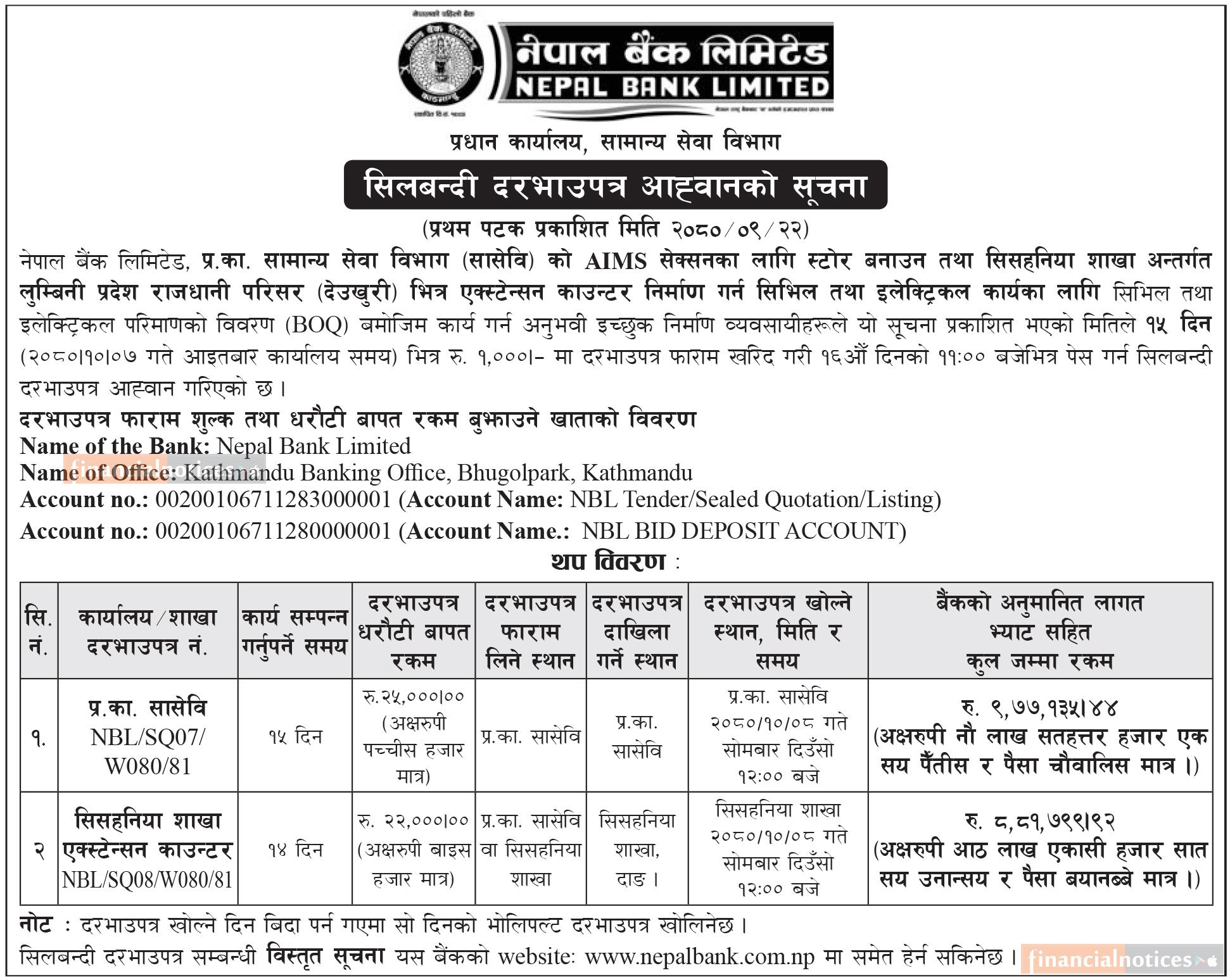 शिलबन्दी बोलपत्र आव्हानको सूचना