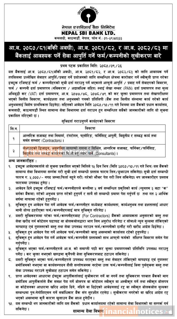बैंकलाई आवश्यक पर्ने सेवा आपुर्ति गर्ने फर्म कम्पनी सूचीकरण बारे सूचना -