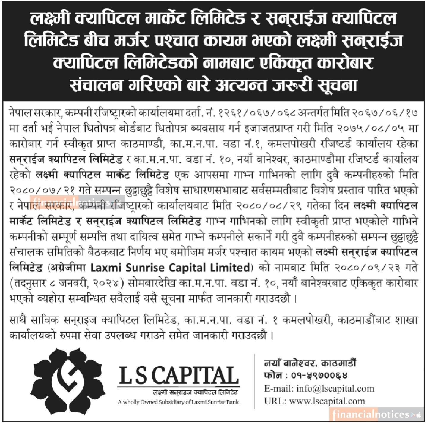 एकिकृत कारोबार संचालन गरिएको सम्बन्धी जरुरी सूचना