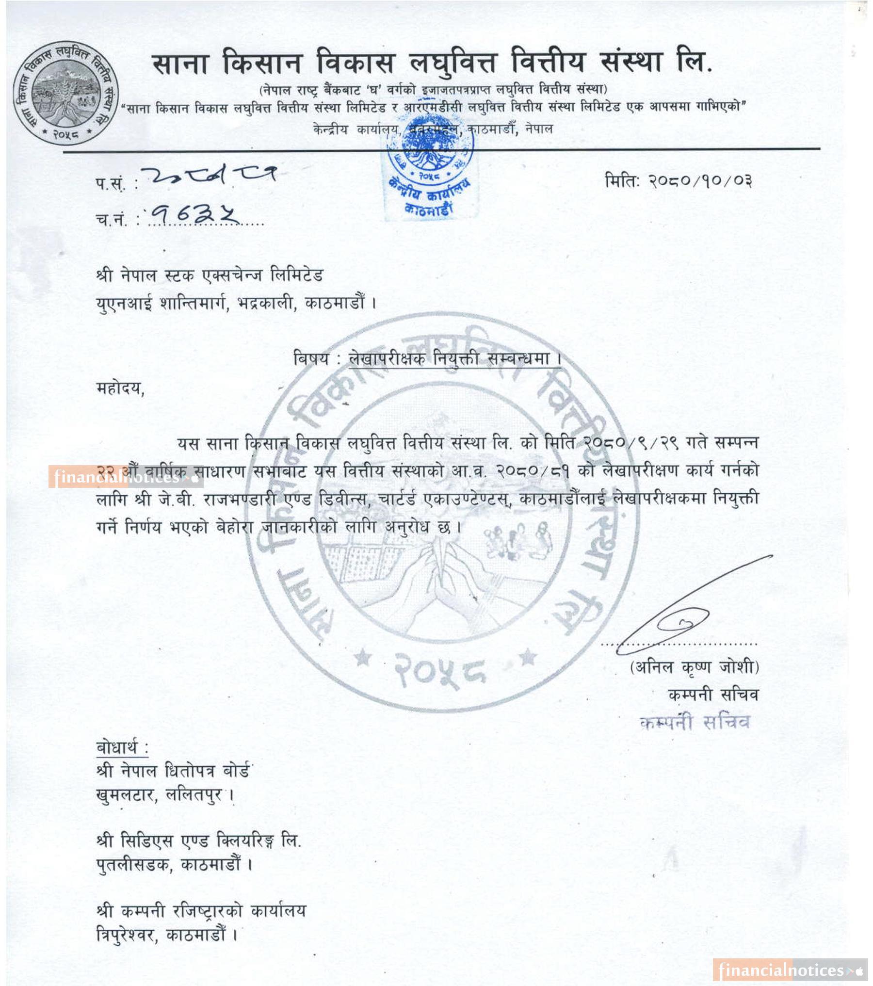 लेखापरिक्षक नियुक्ति सम्बन्धी सूचना