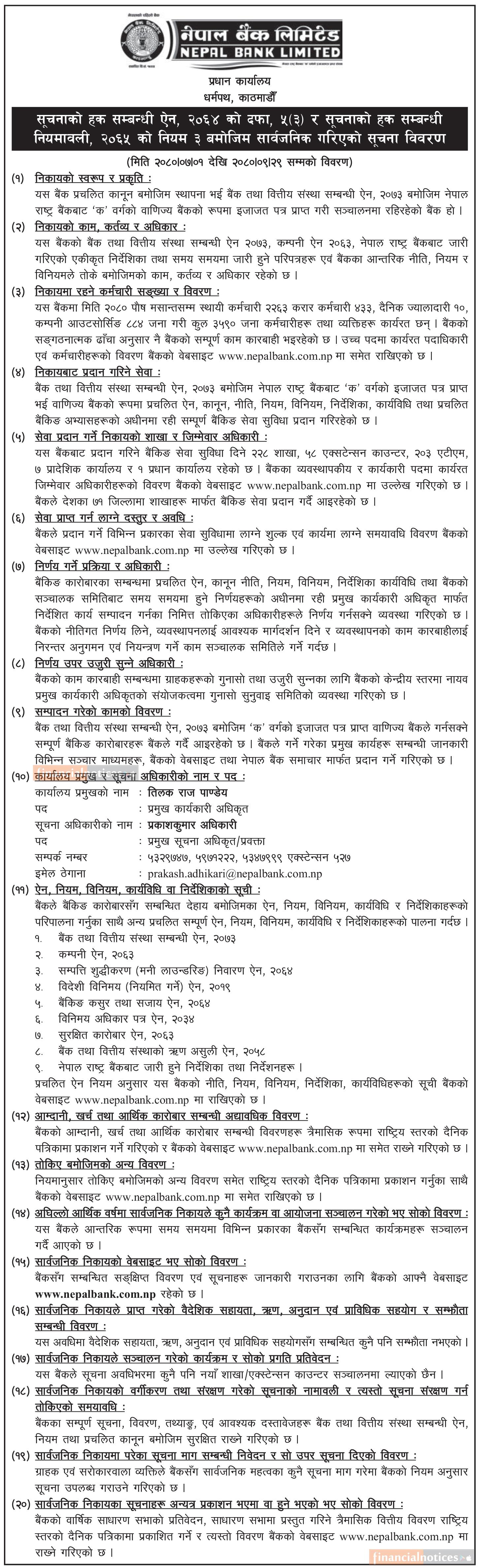 नेपाल बैंकको सूचनाको हक सम्बन्धी सूचना